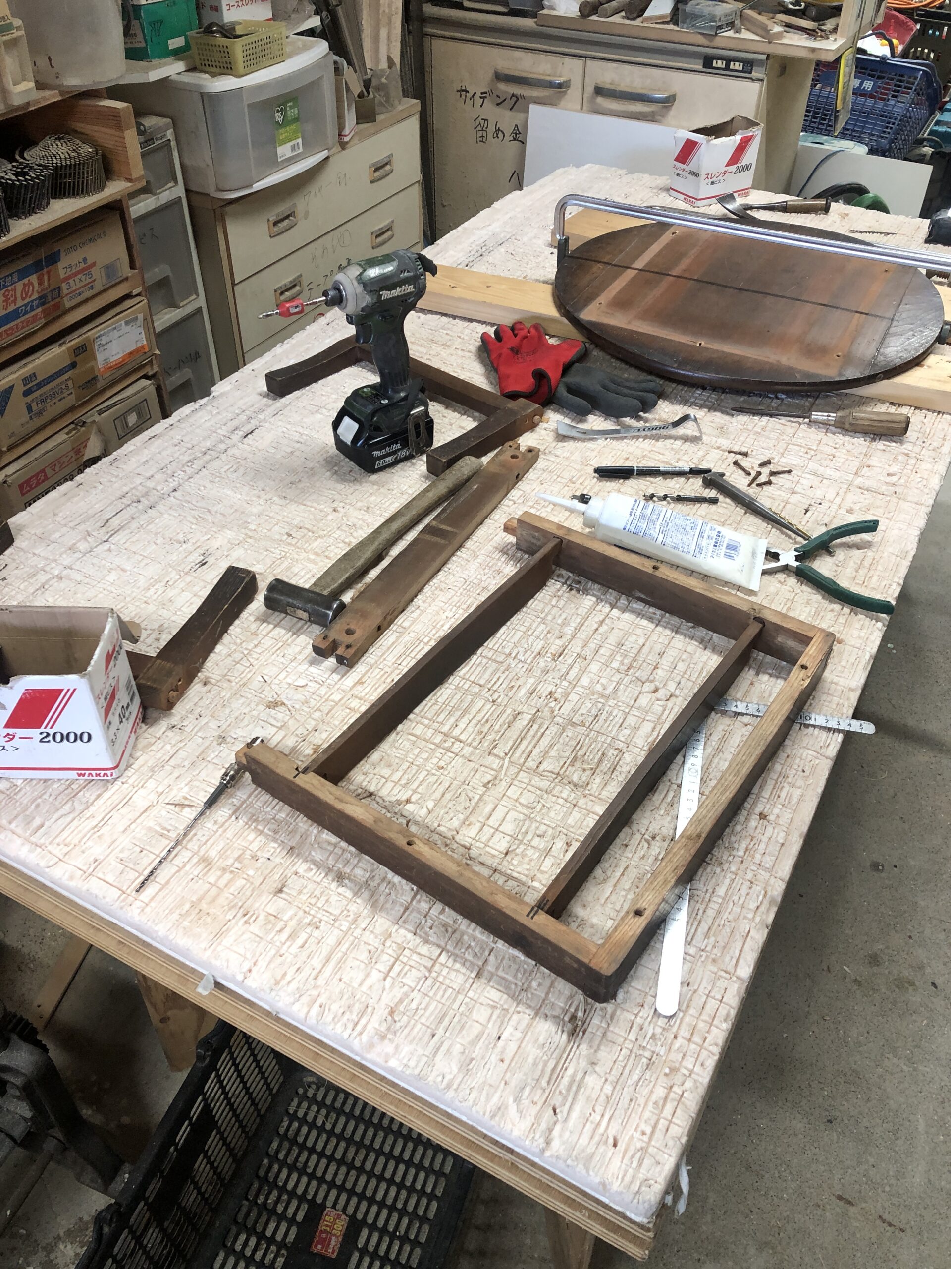 四街道市K様邸でケヤキのちゃぶ台の補修工事を行いました。