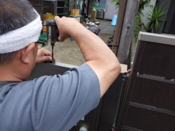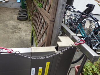 - 門扉にチェーン錠を取り付ける