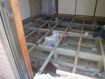 市原市I様邸で和室の荒床と根太の補修工事を行いました。