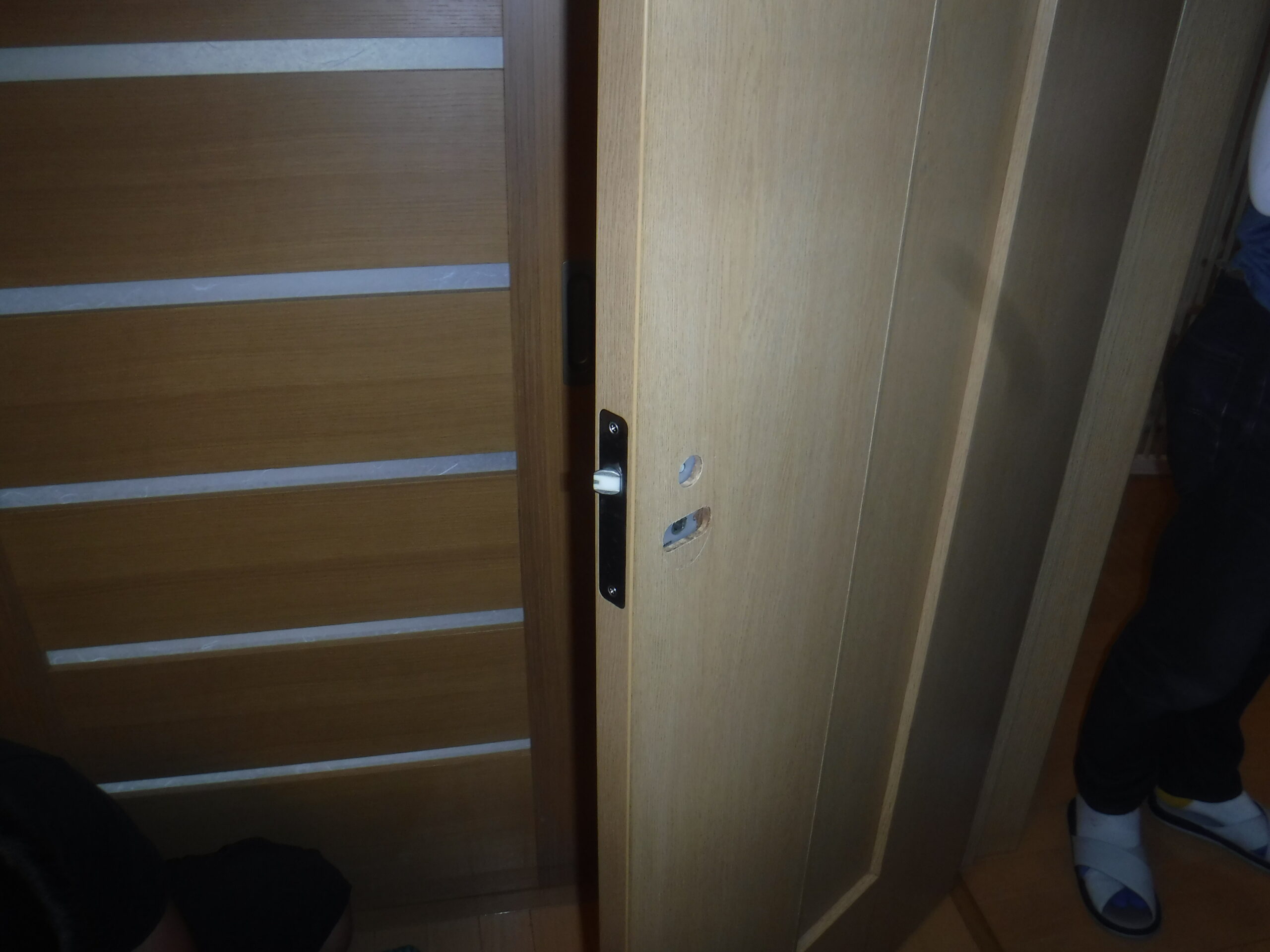 千葉県市原市M様宅でリビングの扉に両側サムタ-ン錠を取り付けました。