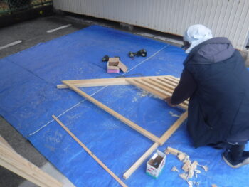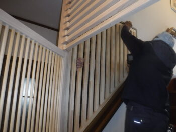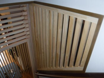 階段格子材を事前に当社工場で加工して時間短縮を行いました。