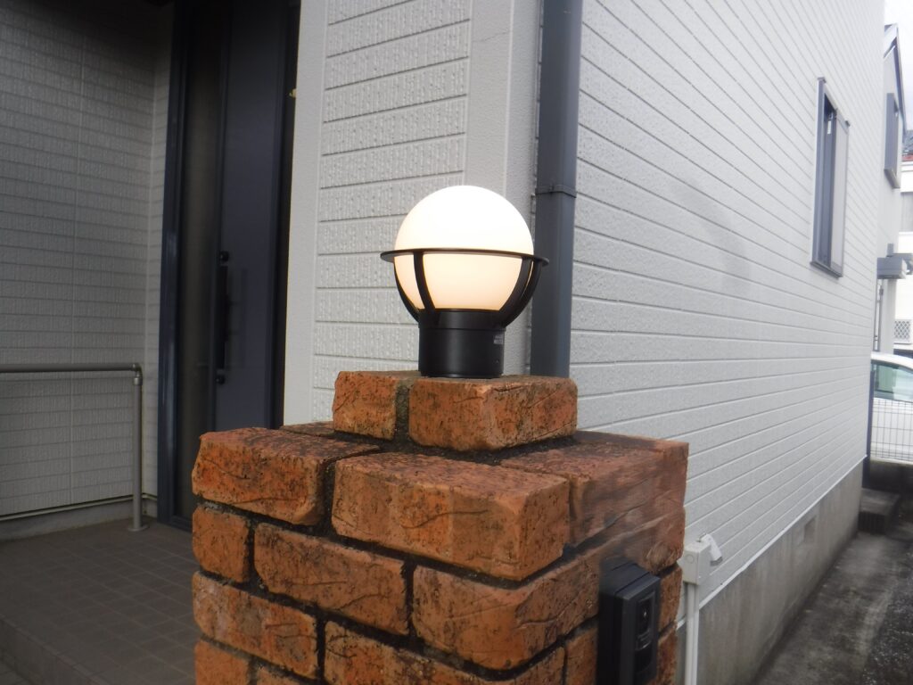 - 玄関の門柱灯を明暗センサ-付の照明への交換工事