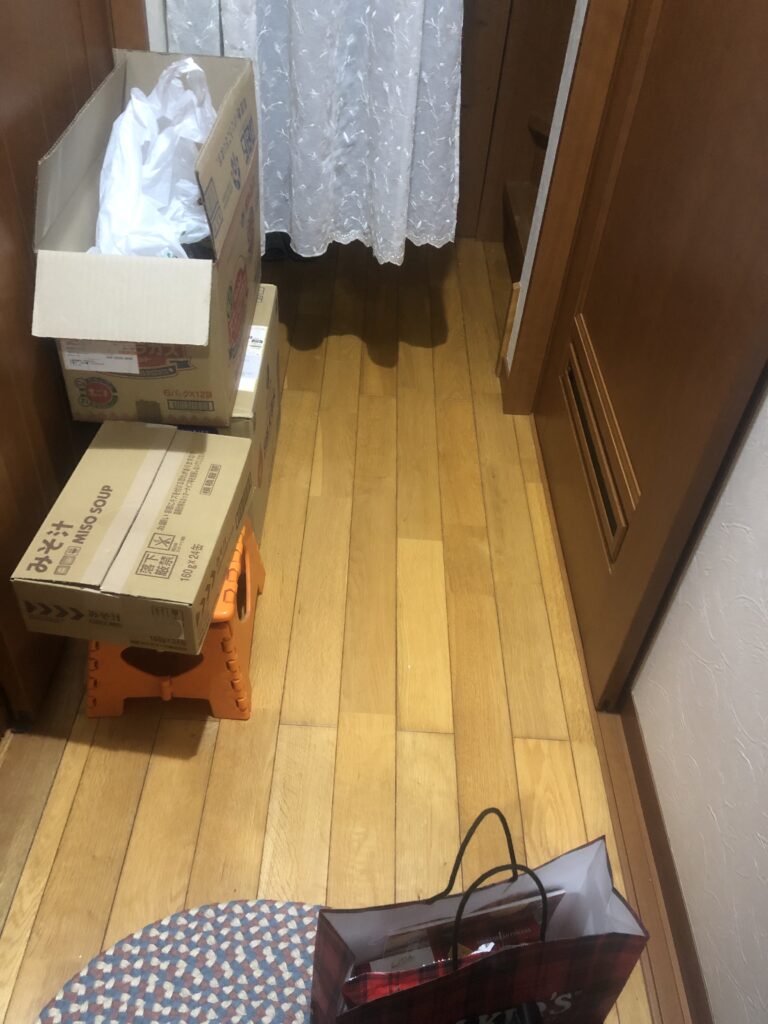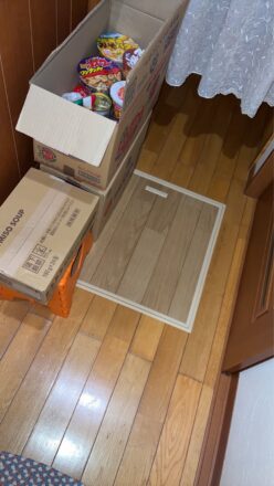 廊下をふさいでいる荷物類を床下に収納したい。
