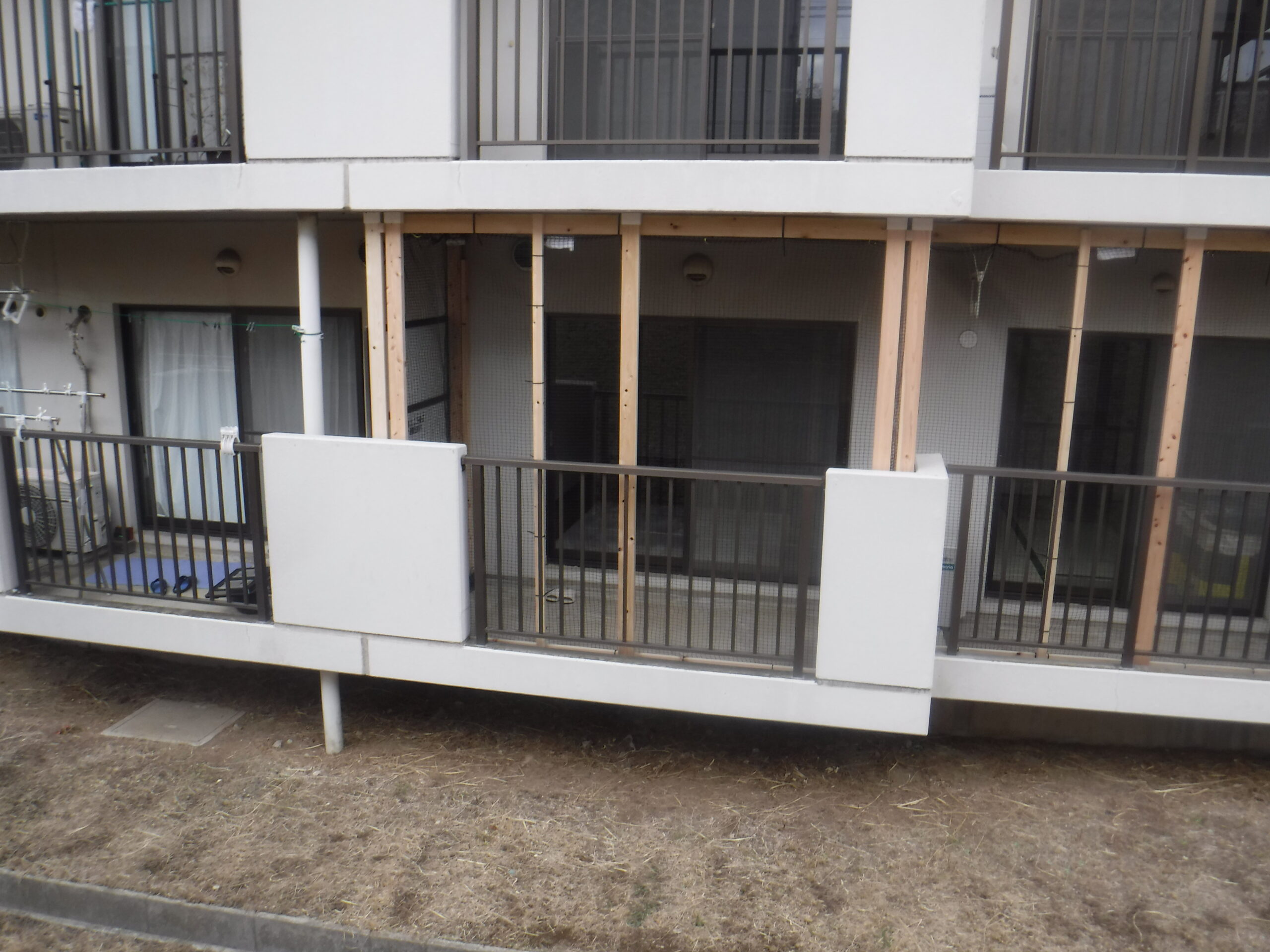 千葉県S様宅でベランダにネコ脱走防止ネットを取付ました。