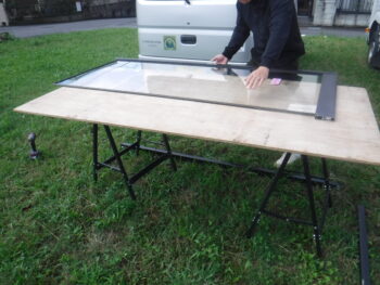 ガラスの厚みが数種類あるので工事業者さんも何種類か用意してきました。