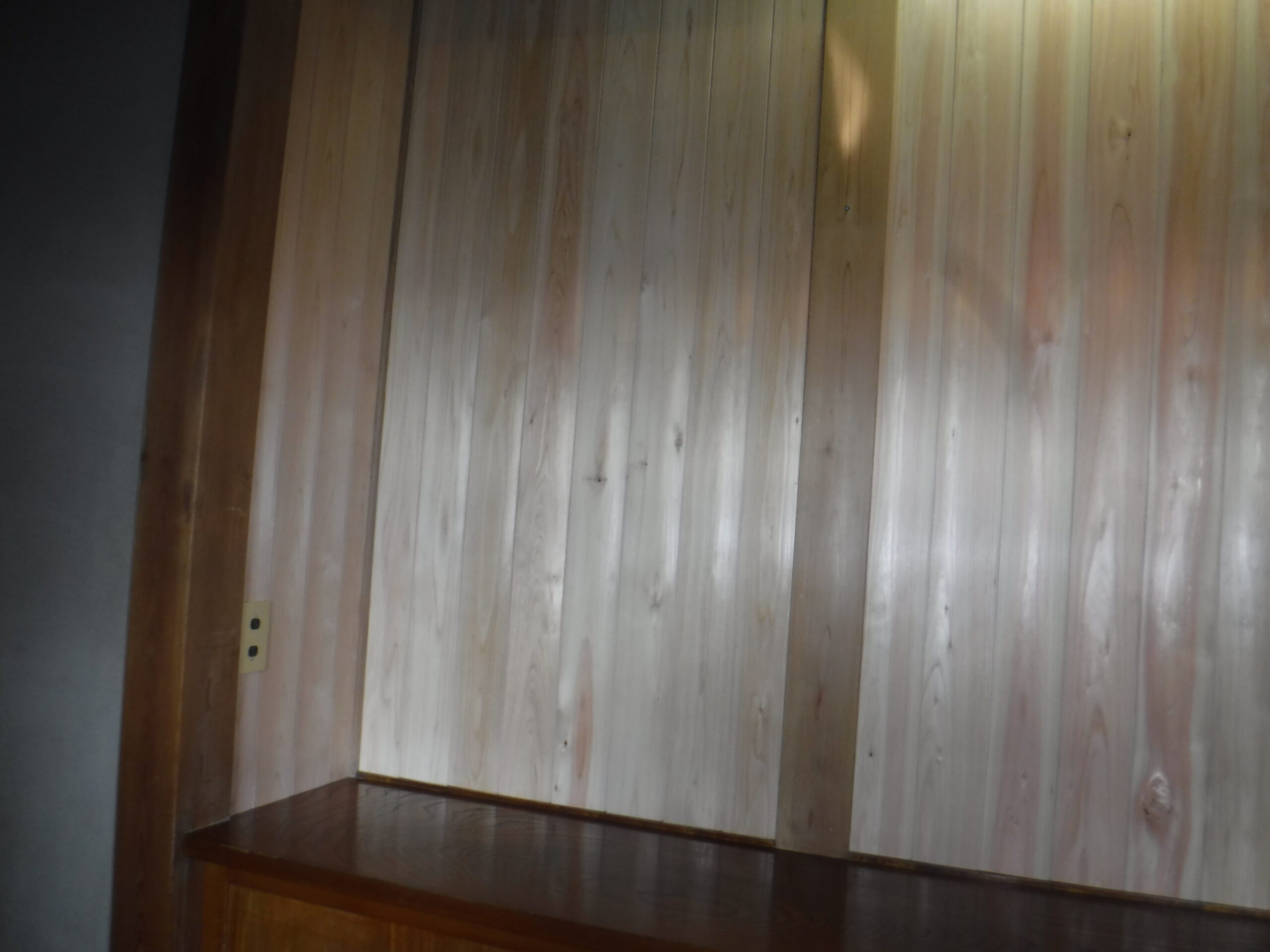 成田市M様邸で真壁の壁を塗装して桧の無地上小の羽目板を貼りました。